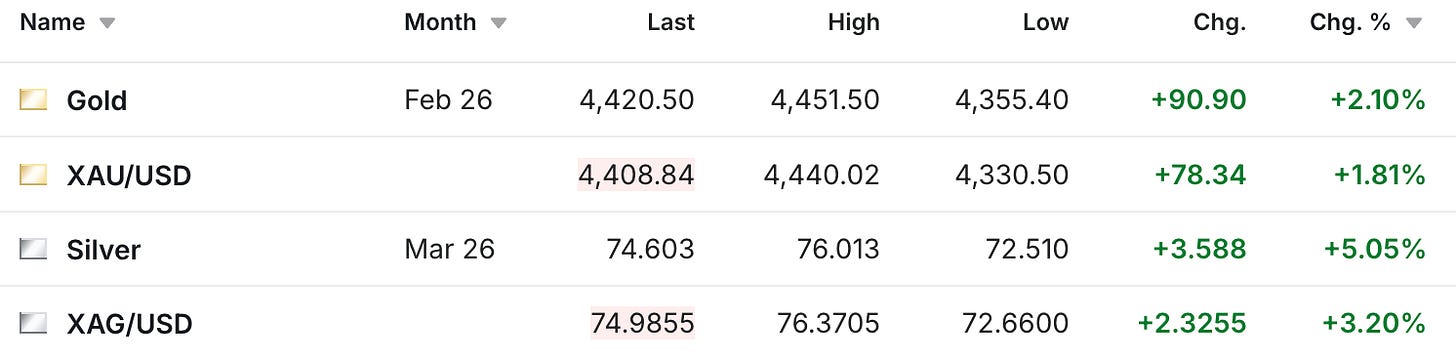 The gold and silver prices are up to start the week, with both metals making substantial moves higher as of early Monday morning.
