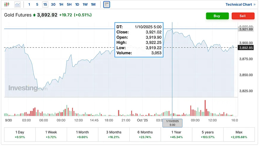 The gold futures were up $20 to $3,893, and reached as high as $3,923 this morning.
