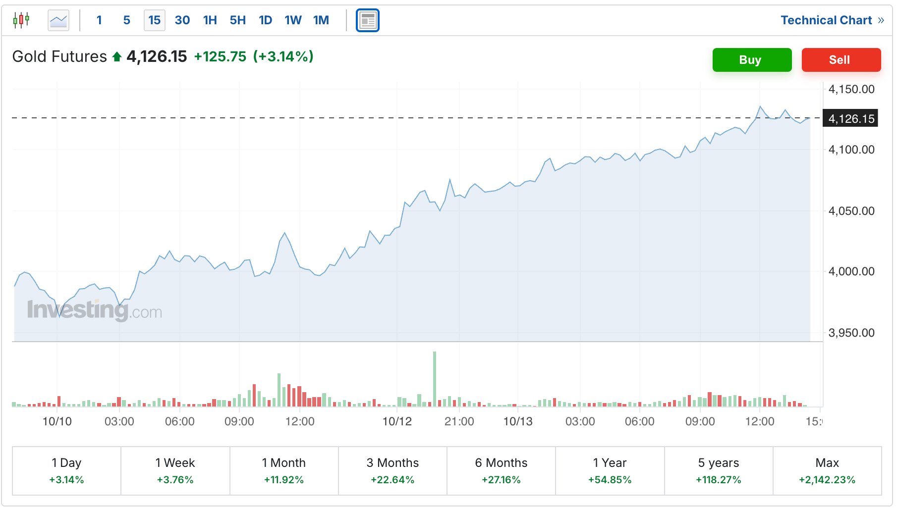The gold futures are currently up $125 to $4,126, and at the moment have left the $4,000 mark in their dust.