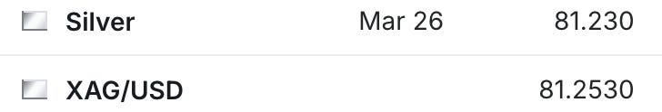The silver futures have soared again over the past two days, and are now back over the $80 level at $81.25.