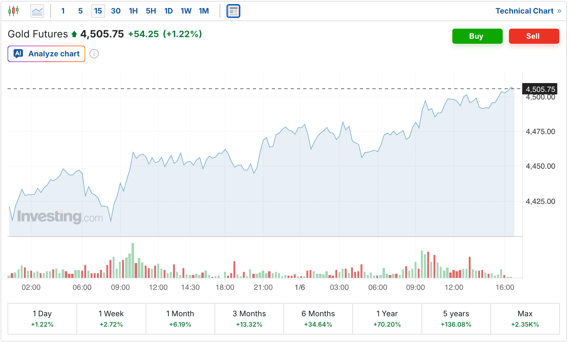 Meanwhile, the gold futures continue to rally as well and are up $54 to $4,506 today.