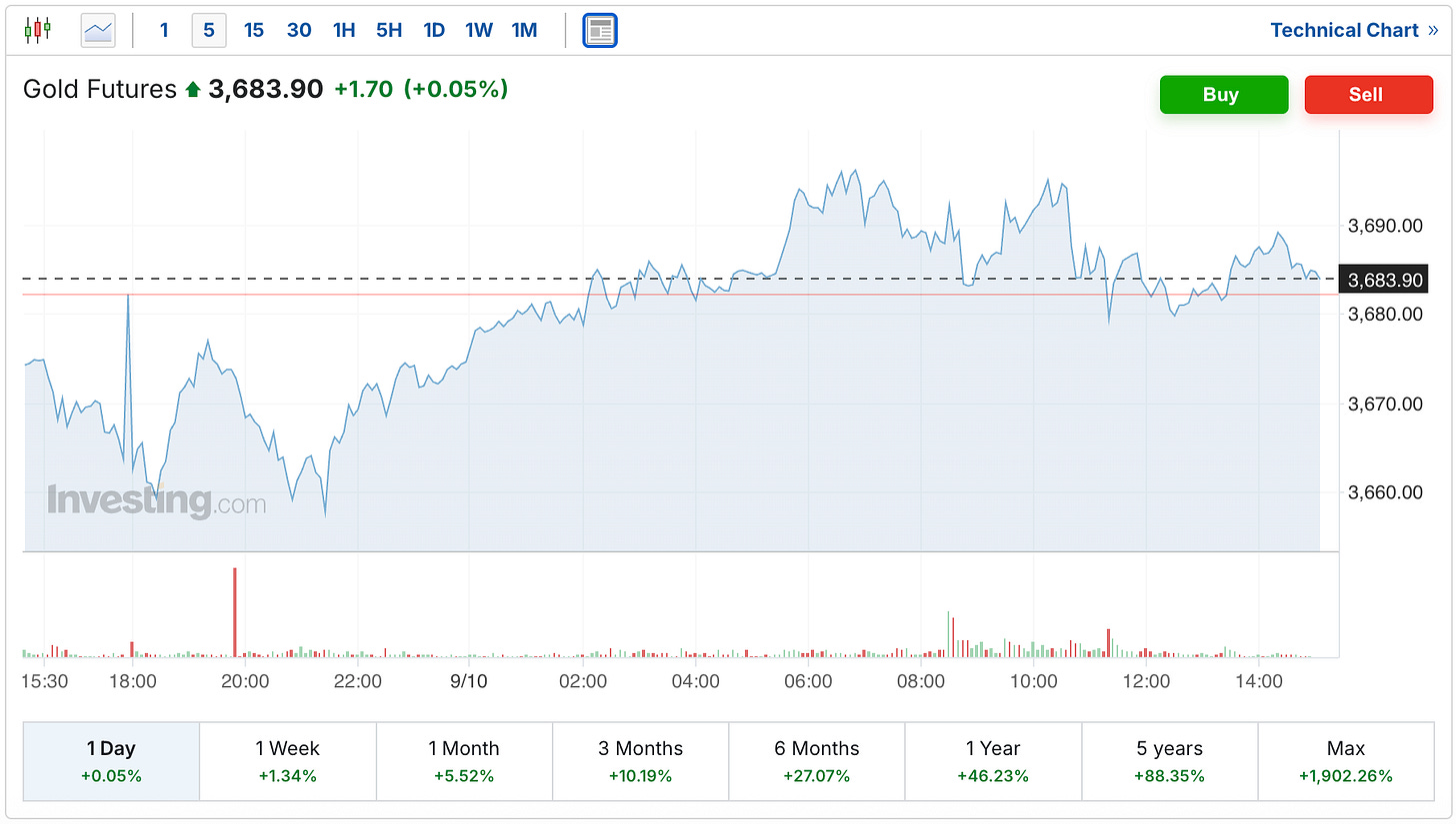 Below you can see the movement in the gold futures, which ultimately ended up $2 higher to $3,684.