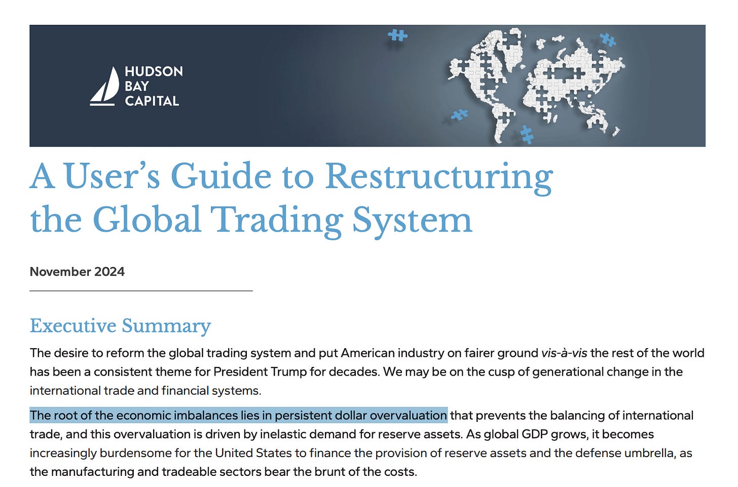 So not only does he feel that the dollar is overvalued. And not only does he feel it's persistently overvalued. But he even says that this overvaluation is the root of all economic imbalances.