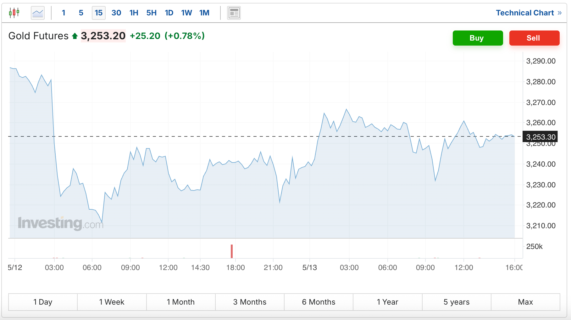 The gold price rebounded on Tuesday after Monday's sell-off, and the futures are currently up $25.